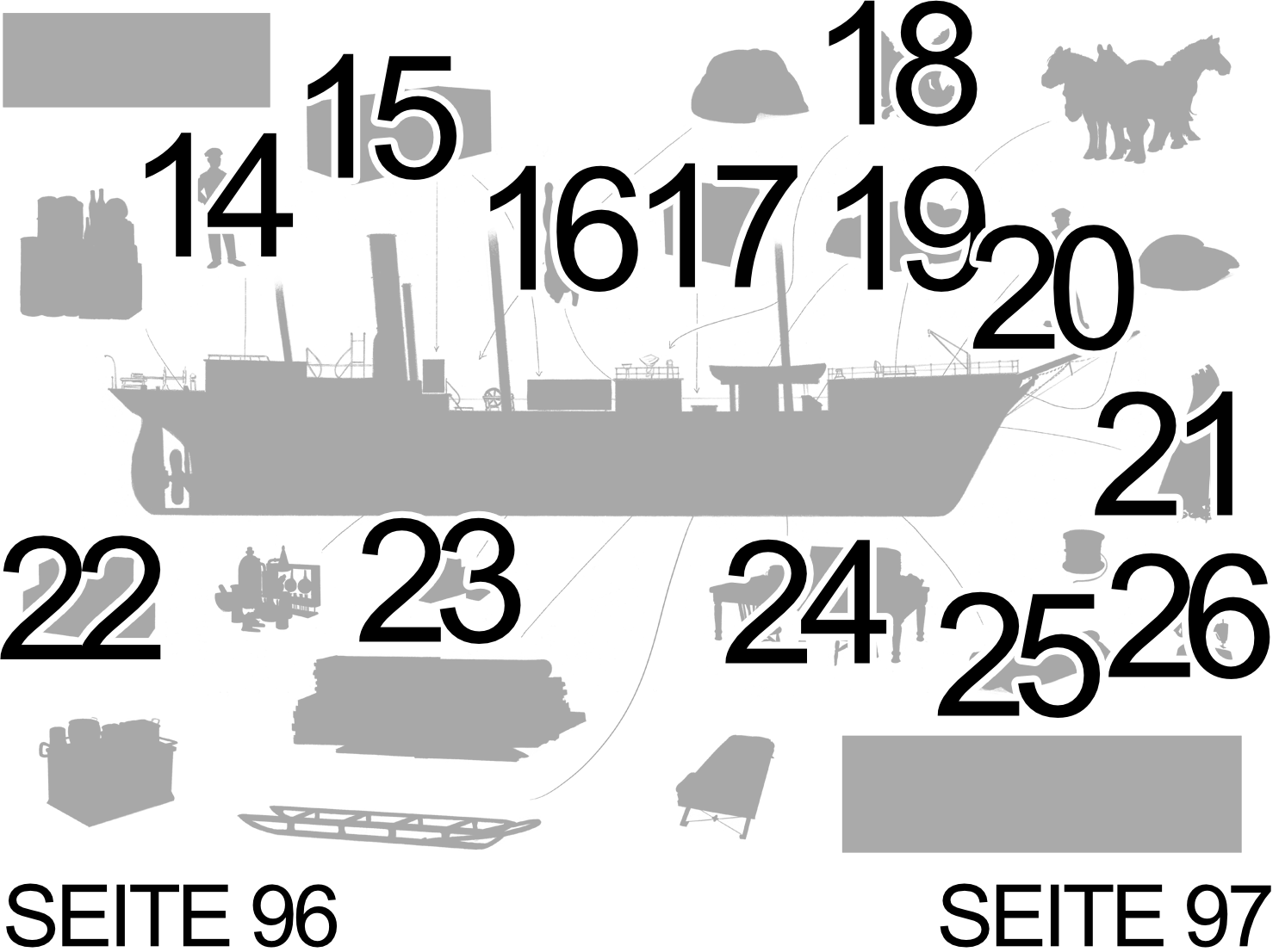 11. „… Lieut. Bowers kam von der Indian Marine zurück, um seine Pflichten als Ladeoffizier aufzunehmen, indem er durch die Hauptluke auf den Roheisenballast fiel. … als Campbell mir über den Vorfall Bericht erstattete, soll ich gesagt haben: ‚So ein dummer Esel!‘. Das mag wahr sein, denn den ganzen Weg aus Bombay angereist zu sein, um zu uns zu stoßen, nur um dann sofort in die Luke zu fallen, erschien mir doch etwas fahrlässig. Als Campbell jedoch hinzufügte, dass Bowers sich nicht wehgetan hatte, kehrte mein Enthusiasmus zurück und ich sagte: ‚Was für ein Kerl!‘ Bowers war fast sechs Meter gefallen, ohne sich die geringste Verletzung zuzuziehen.“ [SWS 21]